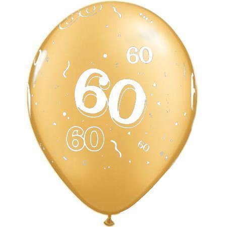 Home / Balloons / Printed Latex Balloons / 11 inch (28cm) Age Birthday Printed Latex Balloons / 60 Around Gold Latex Balloons II60G