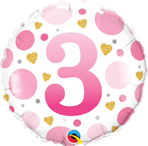 Age 3 Pink Dots 18 inch (45 cm) Foil Balloon Q23124