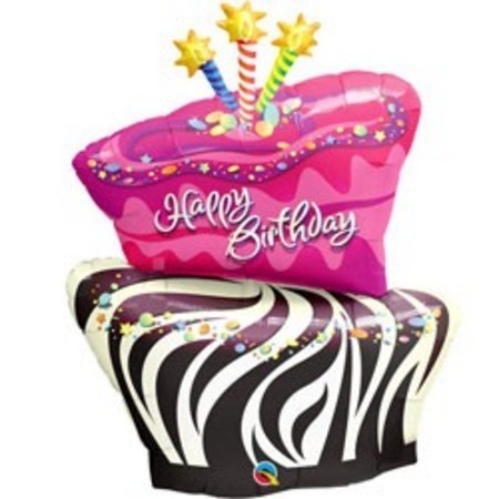 Birthday Funky Zebra Stripe Cake Foil Shape Balloon Q16081