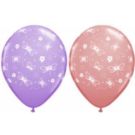 Butterflies & Dragonflies Around Rose & Lilac Assortment Latex Balloon IIBDRL quantity