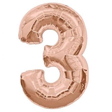 Numeral Three Foil Shape Balloon Rose Pink RP3 quantity