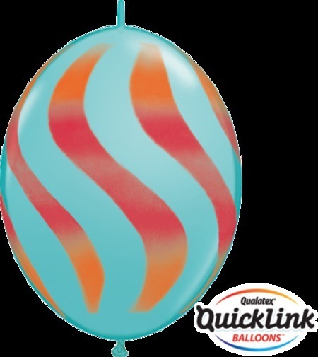 Quick Link 12inch (30cm( Caribbean Blue, Orange & Red Wavy Stripes Latex Balloons Q28094