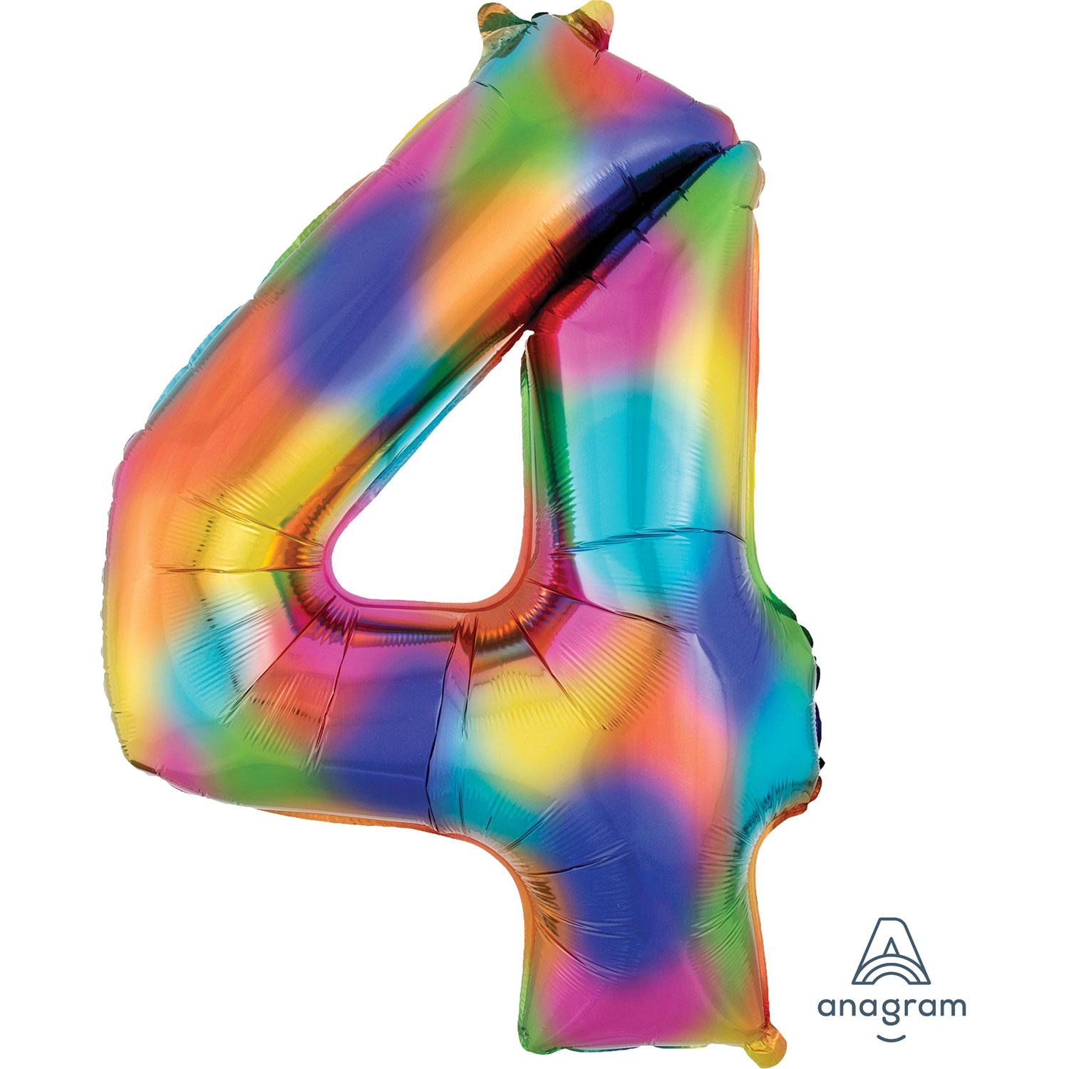 / Rainbow Splash Numeral Four Number Shape Foil Balloon ANA38534