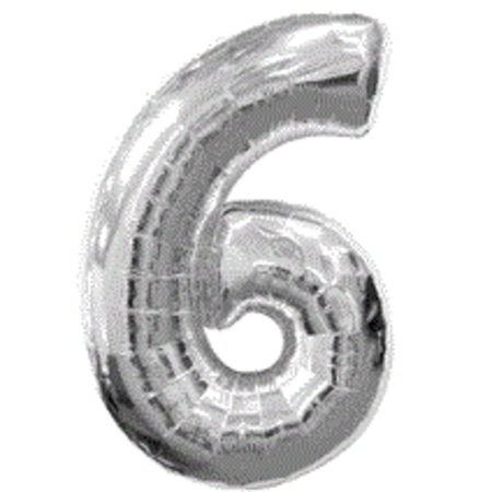 / Silver Numeral 6 Air Fill Foil Balloon 614S