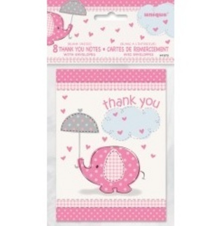 Home / Special Occasion Parties / Baby Shower Party Supplies Australia / Baby Shower Invites & Cards / Umbrellaphants Pink Thank You Notes M41675