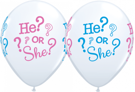 White He or She? Four Sided Printed 11 inch (28 cm) Latex Balloon Q43431